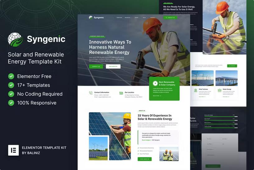 Syngenic – Solar & Renewable Energy Elementor Template Kit Latest Version