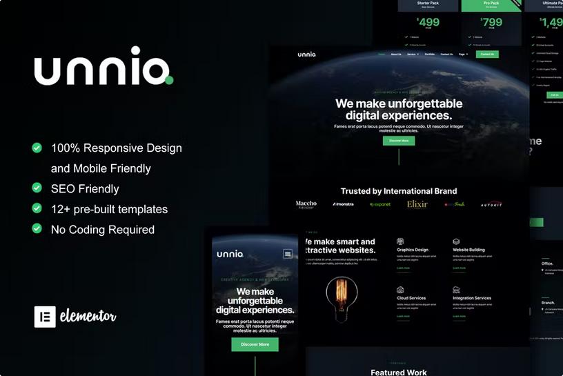 Unniq – Dark Digital Creative Agency Elementor Template Kit Latest Version